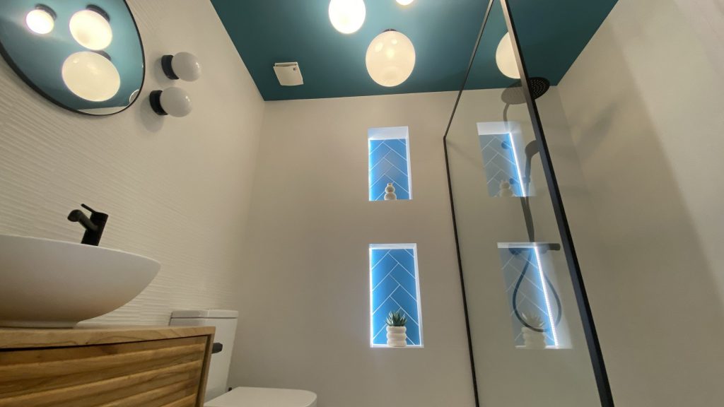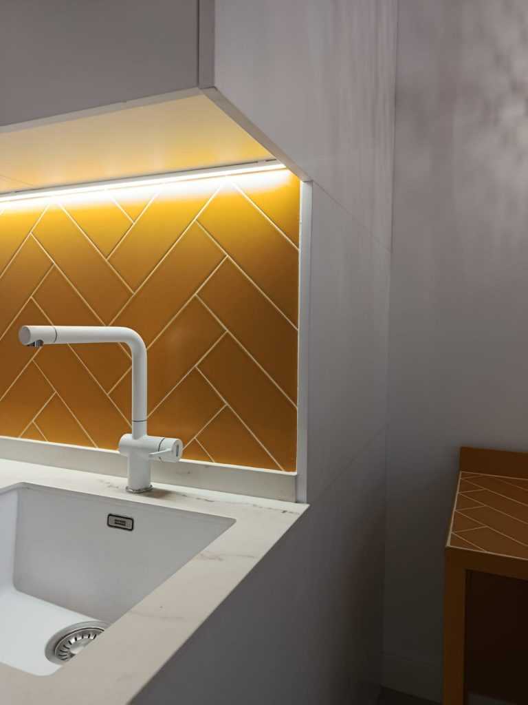 El trabajo estructural fue clave: se acometieron refuerzos que, lejos de ocultarse, se integran visualmente en el espacio, dando carácter y autenticidad. Se recurrió al metal como elemento protagonista —no solo por su resistencia, sino también por su capacidad expresiva—, combinado con cerámica y materiales que dialogan con la preexistencia.
