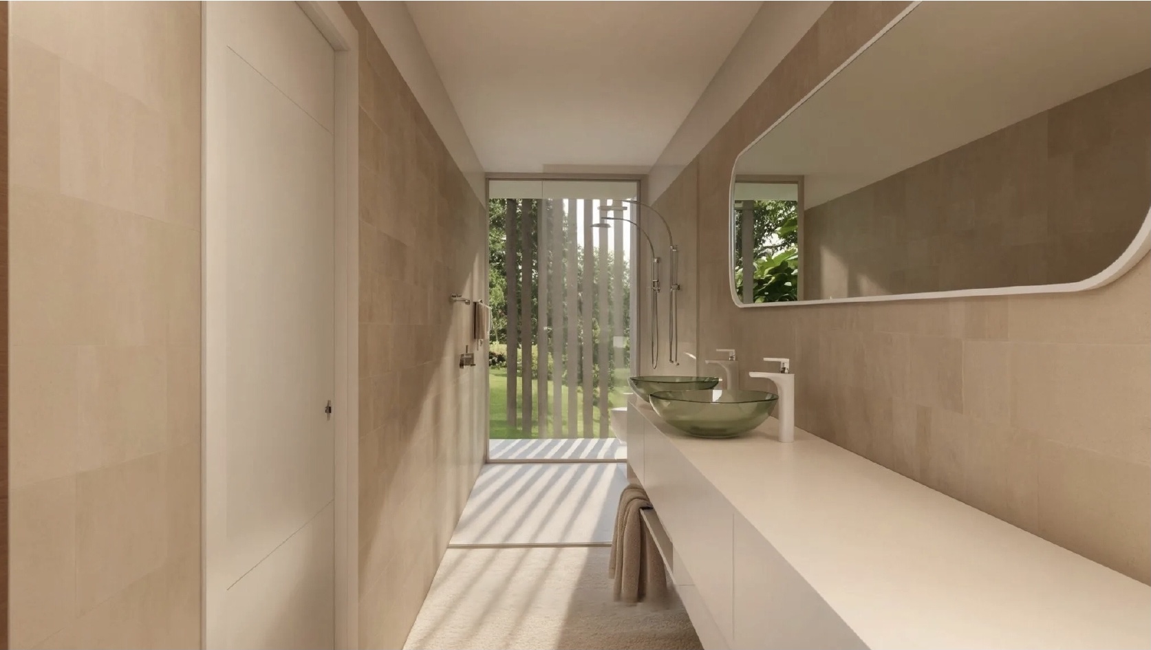La implantación responde a criterios de sostenibilidad, buscando la mejor orientación solar y visual, y generando una experiencia arquitectónica que comienza desde el recorrido: el acceso inferior en coche convierte la llegada al hogar en una metáfora del regreso, enmarcando el momento de “llegar a casa”.